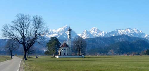 Just before the castle you will pass the church "St.Coloman", which is a famous photo motif.